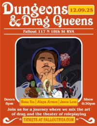 | Tuesday, December 9th Dungeons & Drag Queens Follow 3 legendary drag artists as they delve into the depths of this planes most dangerous dungeons.