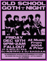 | Friday, December 12th Old School Goth All Old School Music All Night! All Music played will be from prior to 2004
