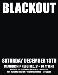 | Saturday, December 13th Blackout Wear your best glow gear and come dance in the dark to Industrial, Electro Body Music, EDM and Old School Techno