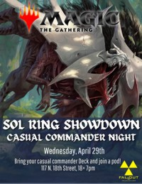 | Wednesday, April 29th Sol Ring Showdown Casual Commander Night